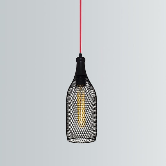 BOTTLE LIGHT, PENDANT Light, Industrial Light, Cage Light, Wire Light, Barshop Lighting, Farmhouse Lighting, Kitchen Light, Wire Bottle Lamp by VIXTERIOR