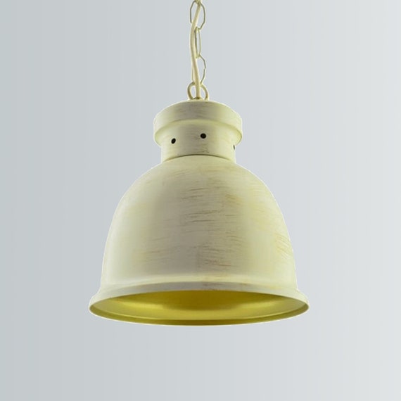 WHITE VINTAGE LIGHT, Pendant Light, Vintage Light, Hanging Loft Lamp, Vintage Yellow, Rustic Pendant, Cream Lighting, Nostalgic Lighting by VIXTERIOR